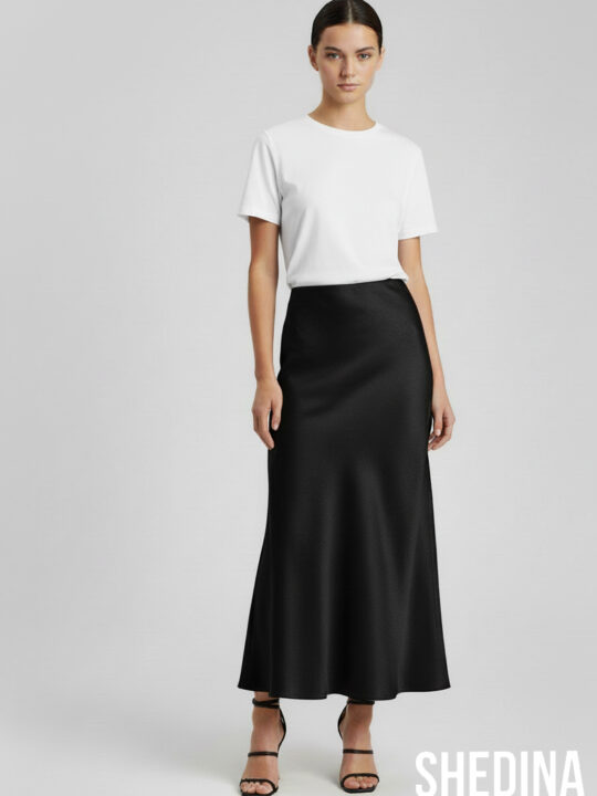 Лаконічний та універсальний комплект, який легко адаптується до повсякденного гардероба. Поєднання базової футболки та елегантної спідниці створює збалансований образ, актуальний у будь-який сезон.