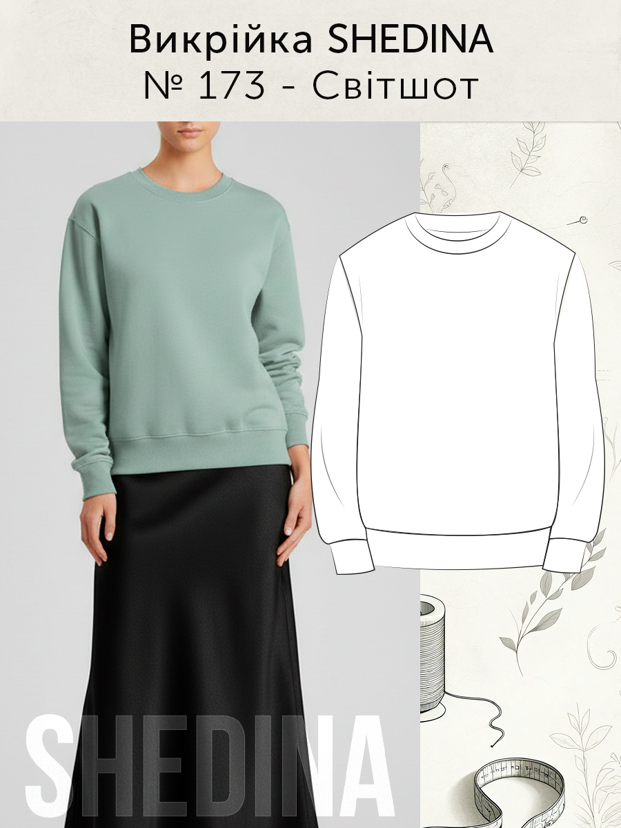 Викрійка № 173 Світшот, у розмірах: 40, 42, 44, 46, 48, 50, 52